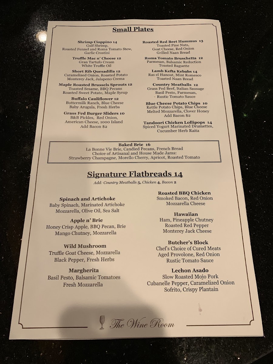 The thoughtfully curated menu features delightful small plates like flatbreads, cheese, and charcuterie boards, perfectly paired with your wine selections. Every dish is crafted to enhance your tasting adventure, making each sip and bite a harmonious experience.